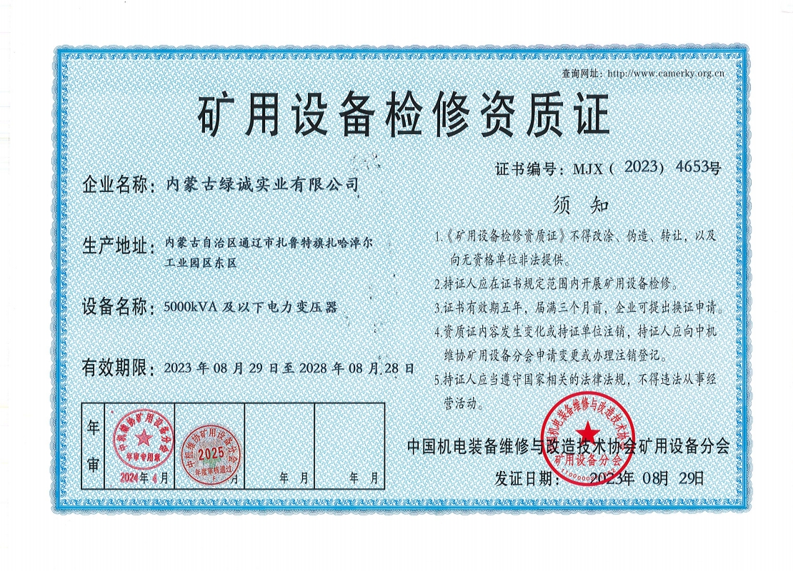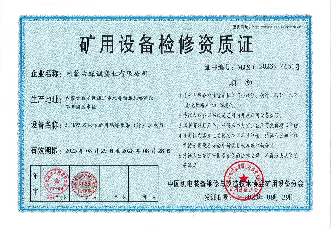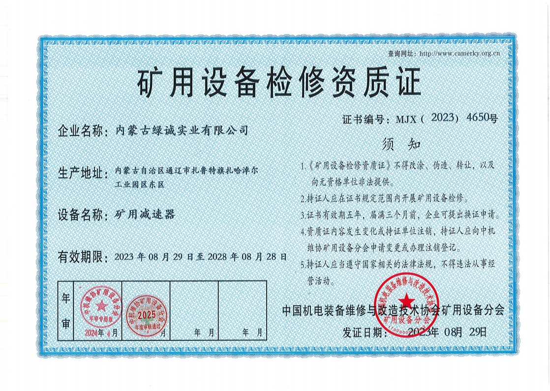 2018年我公司通過中國機(jī)電裝備維修與改造技術(shù)協(xié)會礦用設(shè)備分會審核并取得了9項(xiàng)礦用設(shè)備檢修資質(zhì)證書。公司本著“誠信為本 質(zhì)量為先 全心全意為客戶 ”的服務(wù)理念,圓滿完成各個廠礦的機(jī)械維修及配套服務(wù),期待與您共同合作。
